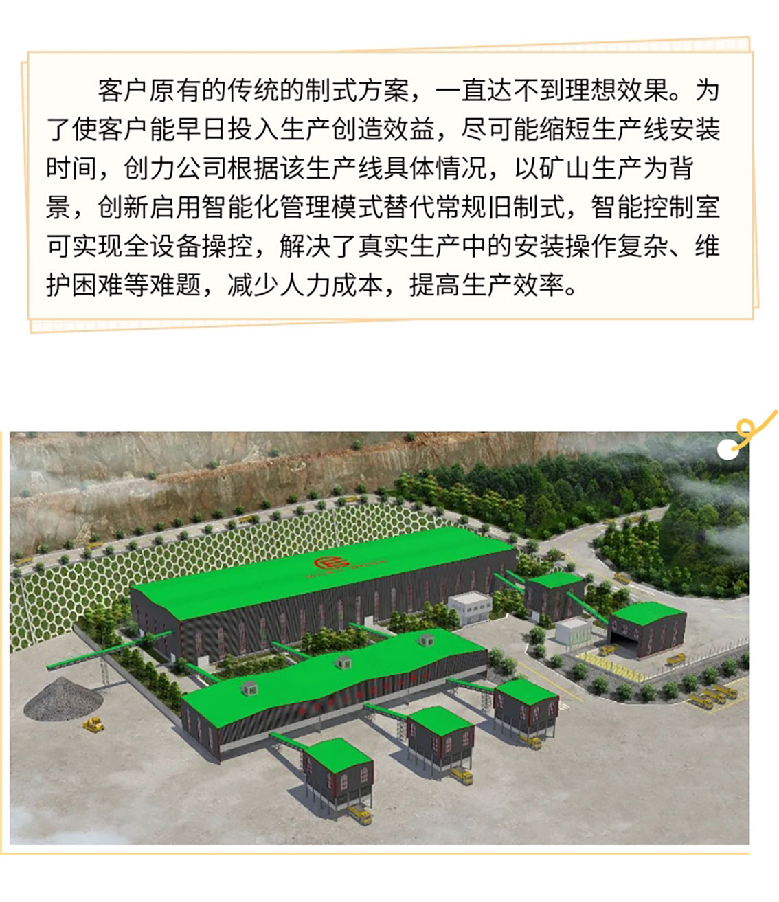 廣東省創力智能機械設備有限公司是一家集產品開發、生產、銷售于一體的礦山機械設備專業生產企業。公司占地面積74300m2,總投資約2億元,年產能約5億元以上。公司現有各種大型加工和起重設備70多臺(套),加工能力強大。